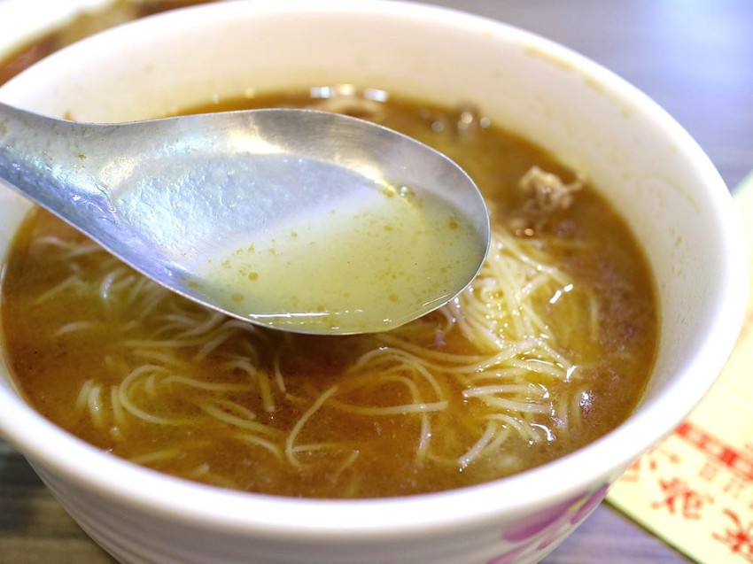 鱔魚意麵焿的 焿湯,稍稍蓋過了 意麵麵體,卻不像之前吃過的,讓意麵全部泡在焿湯裡。