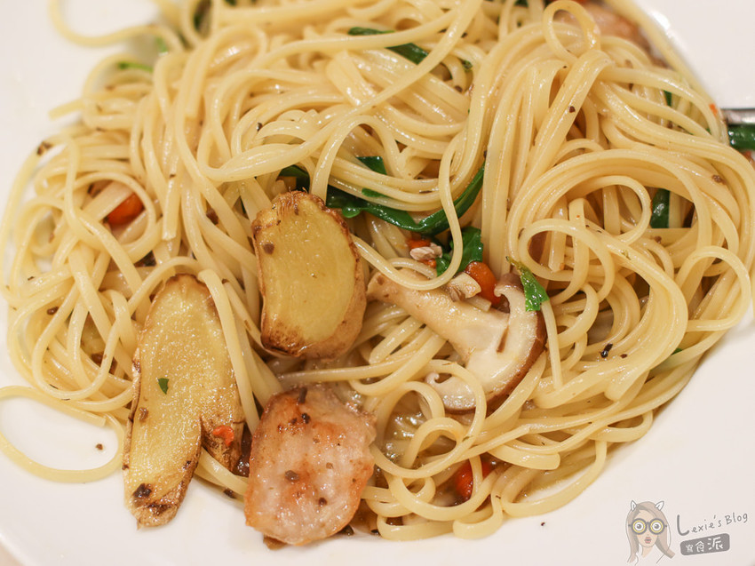 菜單也沒看清楚只有看到松版豬我就腦弱的點了這道,第一口吃進去,一個不在期待內的味覺衝擊讓我嚇一跳,竟是很台式的口味,但與義大利麵的搭配竟然完全不違和,我非常喜歡,根本就是ㄈㄈ尺的經典代表作!