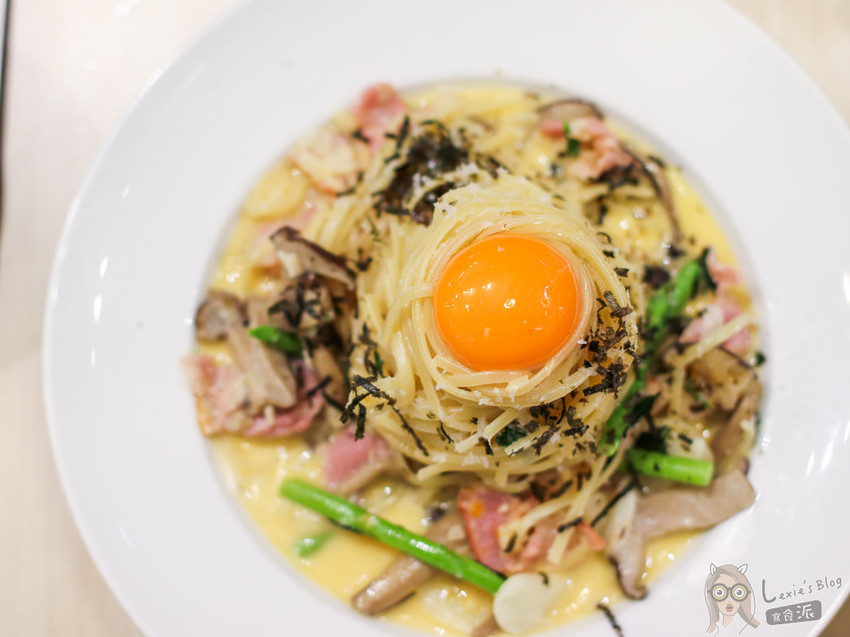 捲得非常用心的義大利麵直挺挺的上桌,中心還打了一顆誘人的蛋黃,視覺效果一流。