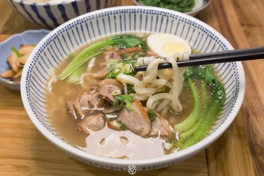 用的是Q談的拉麵麵條,湯頭有中藥味,我吃到淡淡的當歸位,不過有點可惜的是煙燻桃鴨胸有點煮過頭,吃起來似乎稍硬。