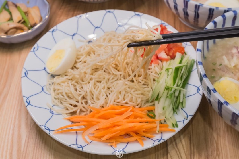 炎炎夏日,若想來點涼爽口感的餐點,可以試試這道冷麵,Q彈的麵條蓋滿了蕃茄碎、紅蘿蔔絲、小黃瓜絲,再淋上胡麻醬,芝麻香氣十足,口感略甜。