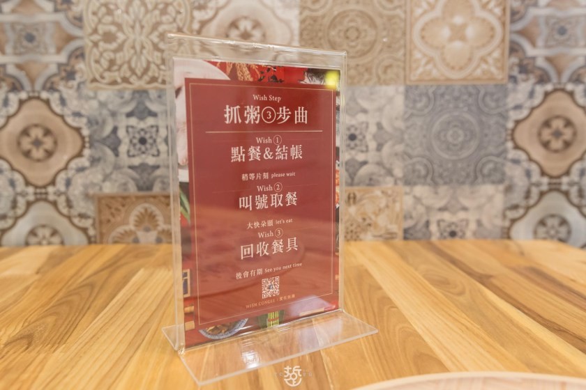 一進到店裡是開放式備餐區,用餐先找座位後,再至櫃台點餐,店內座位數不多,巔峰期間得在騎樓先候位。餐點完成後會叫號取餐,用餐完畢得自行回收餐具。