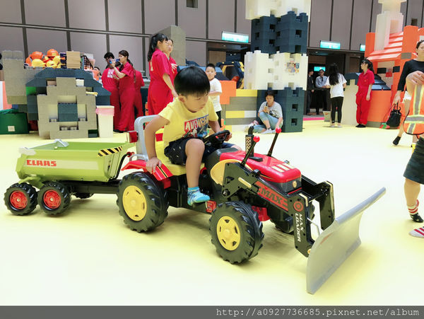 裡面有大型的挖土機 ,小朋友可以在園內開來開去