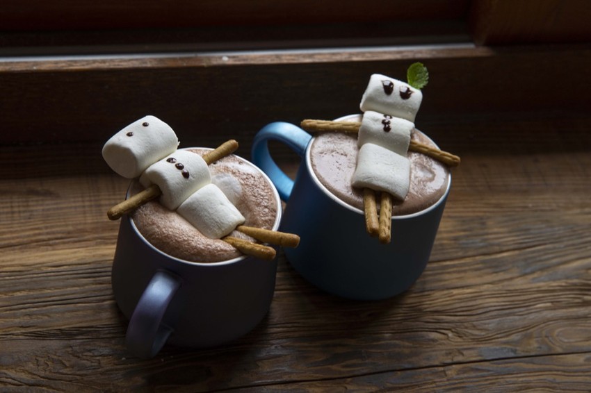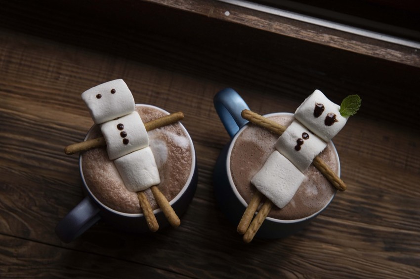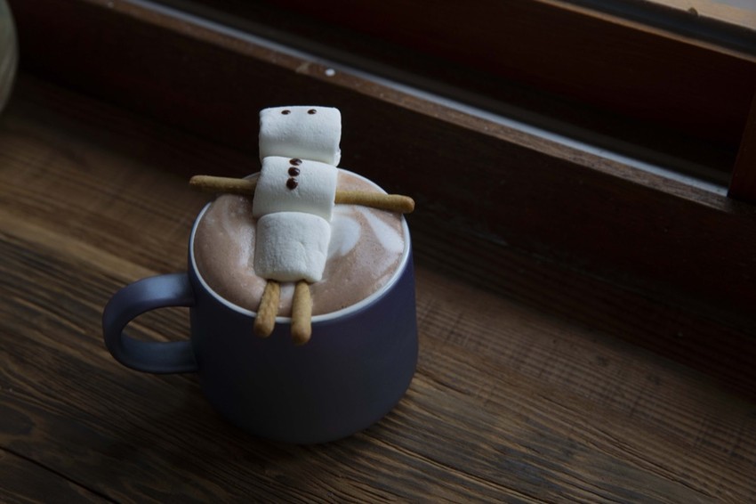 最吸睛的莫過於這杯「棉花糖可可」,上頭的棉花糖小人像是療癒的泡著湯