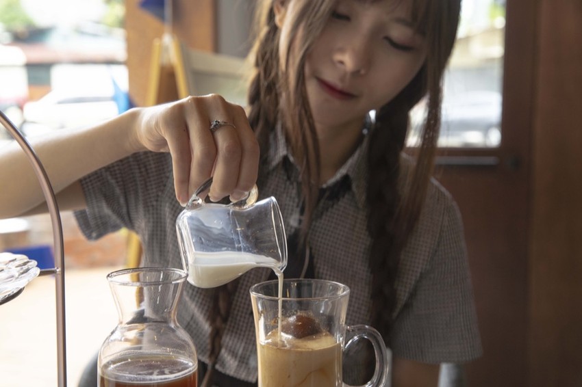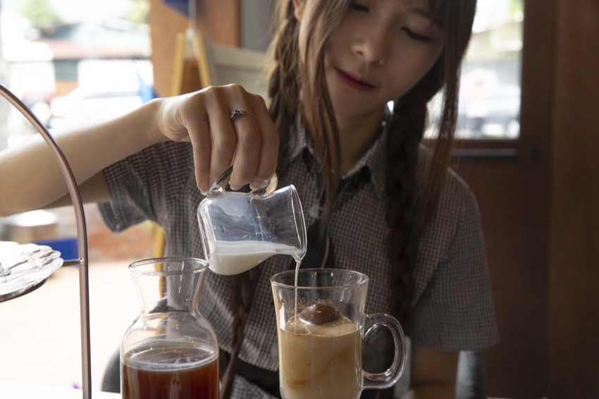 可以依照自己喜歡的口味加入適當的牛奶或是黑糖調味,冰磚是自製的,咖啡醇厚不酸,加入牛奶以後後更濃郁~