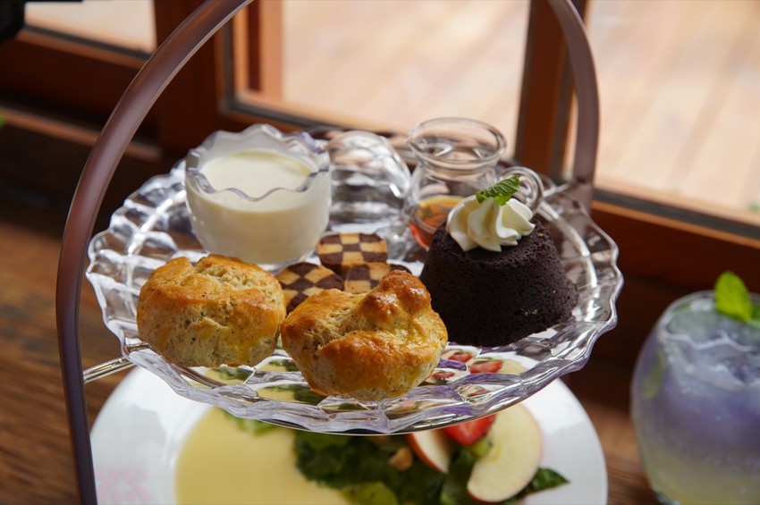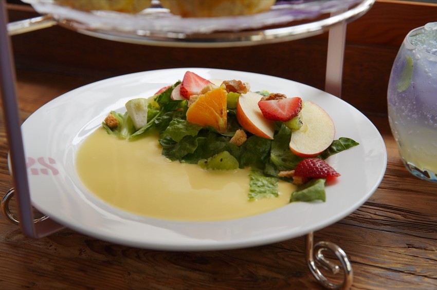 拼盤一共有兩層,上面有手工餅乾、布朗尼、奶酪…等,下層則為水果沙拉