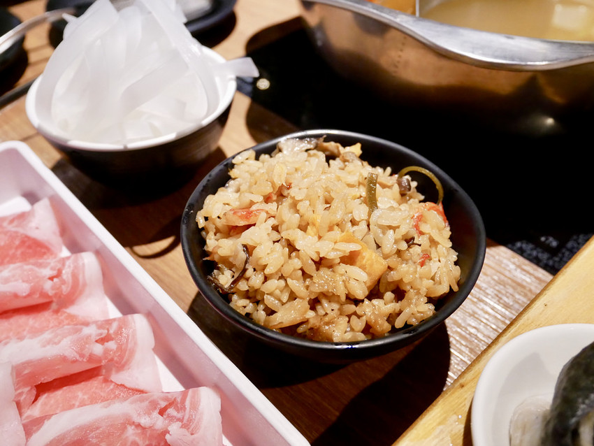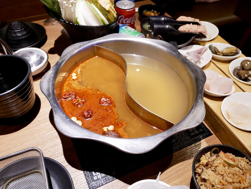 鴛鴦鍋的湯頭可以自由配,選了原味高湯跟麻辣鍋,麻辣湯頭倒是不錯喝,是可以喝入口的,在非麻辣火鍋專賣店來說算是很討喜的口味