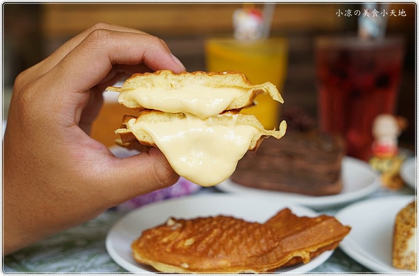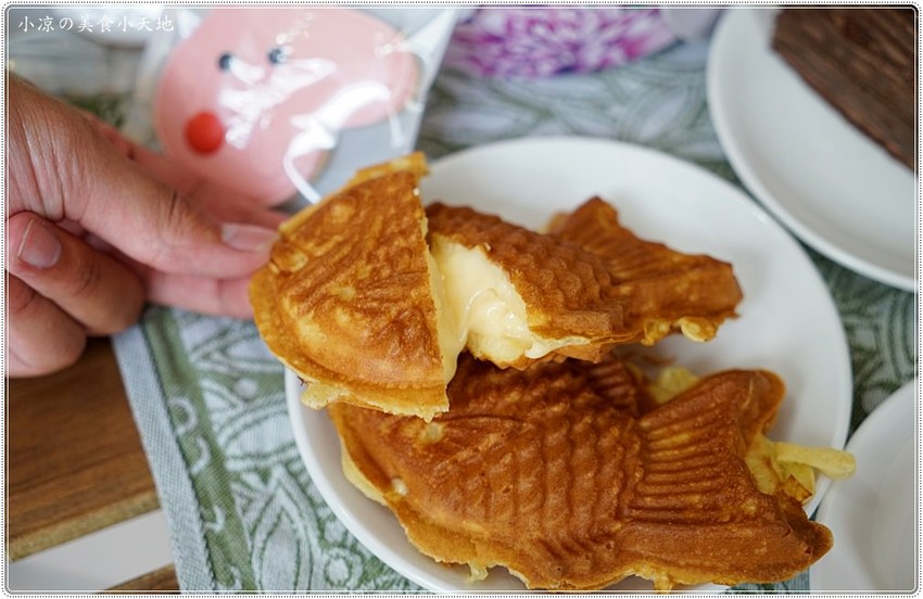 除了手作甜點,還有現點現做的鯛魚燒,鯛魚燒口味固定有四款,奶油卡士達、紅豆麻糬