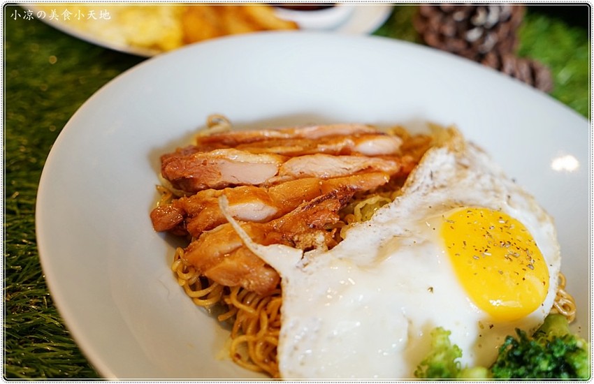 公仔麵=香港泡麵,搭上軟嫩的去骨雞腿排、荷包蛋、時蔬完美的呈現!
