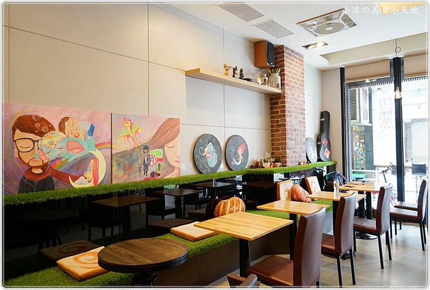 店內充滿了療癒系的小物,玩偶、草皮綠意…是個超放鬆的用餐環境