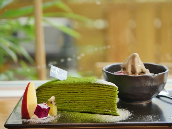 包含了一快抹茶千層蛋糕+培茶冰淇淋