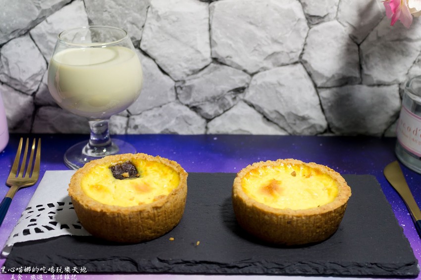 蛋塔搭配有機發芽黑豆漿,很管飽!!這飽可不是膩到飽,畢竟豆漿喝起來是有厚度的,再加上這80公克重的蛋塔,紮紮實實很有份量!