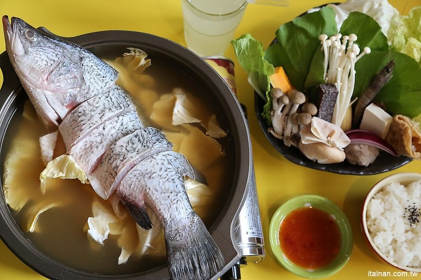 我點了泰式酸辣火鍋鱸魚鍋,一上桌立刻被這一整尾的鱸魚給嚇到了阿!!