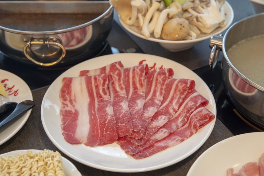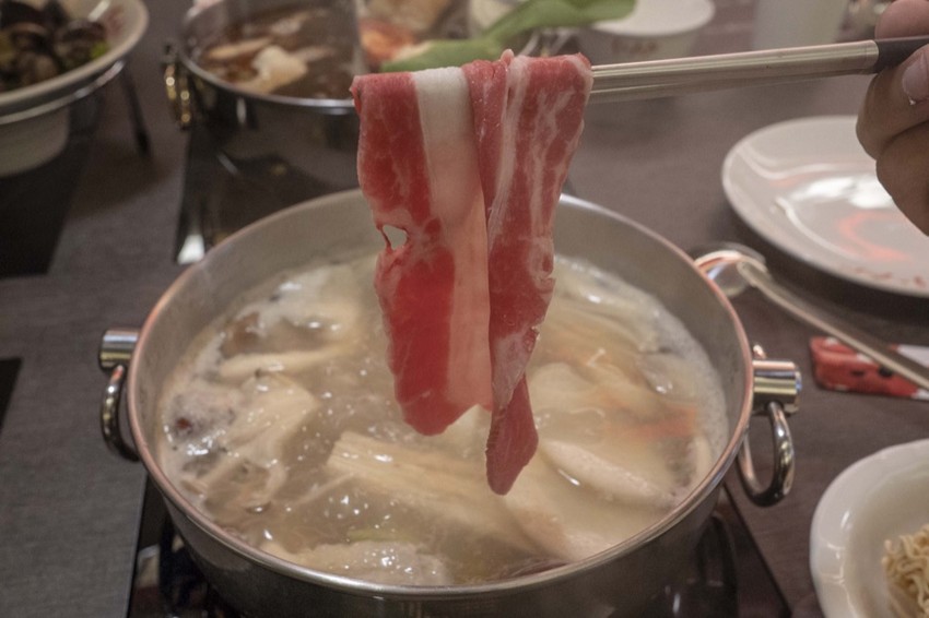 活菌松阪豬的來源是台灣的豬肉,牛肉油脂分布也很均勻,最喜歡松阪豬爽脆的口感,搭配蔬菜湯底非常清爽脆口😍