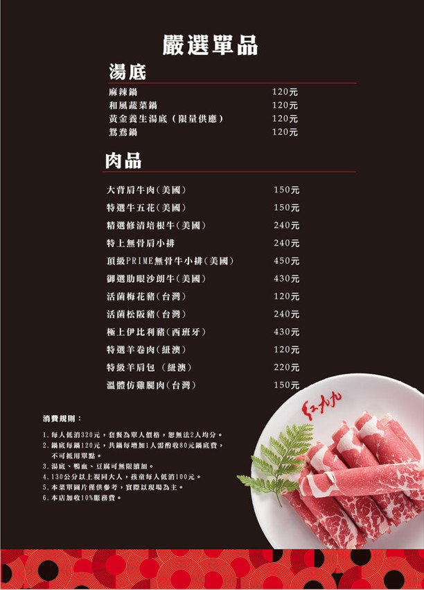 桌上也寫著鮮品湯頭,在涮肉片,後嚐蔬菜