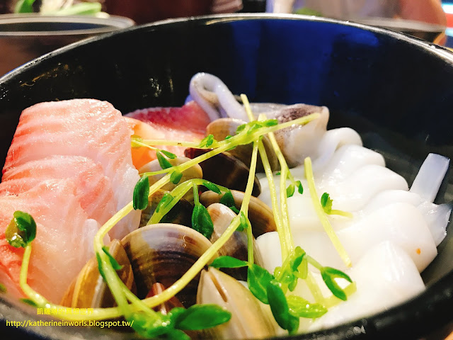 海底拚三鮮 _ 288元,店家提供鯛魚、蛤蠣、花枝,特別喜歡與北海柴魚湯l涮煮,新鮮好吃