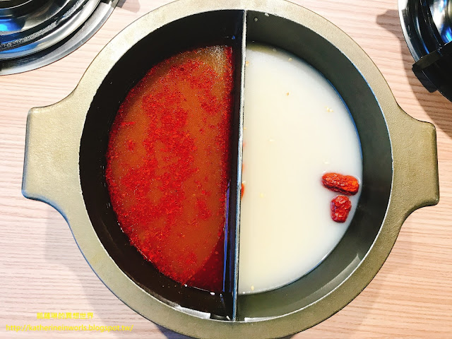 鴛鴦湯底 ( 蜀山麻辣湯 + 豚骨龍白湯底 ):喜歡麻辣口味的,推薦這湯底,辣得很夠味。