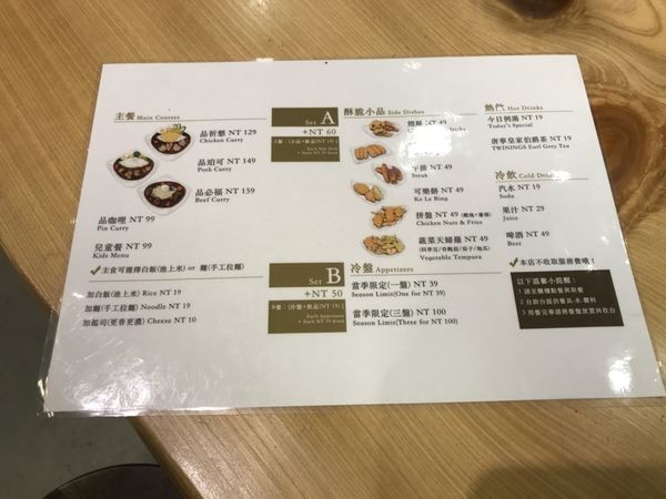 一組套餐有咖哩炸物跟湯品(或飲料)
