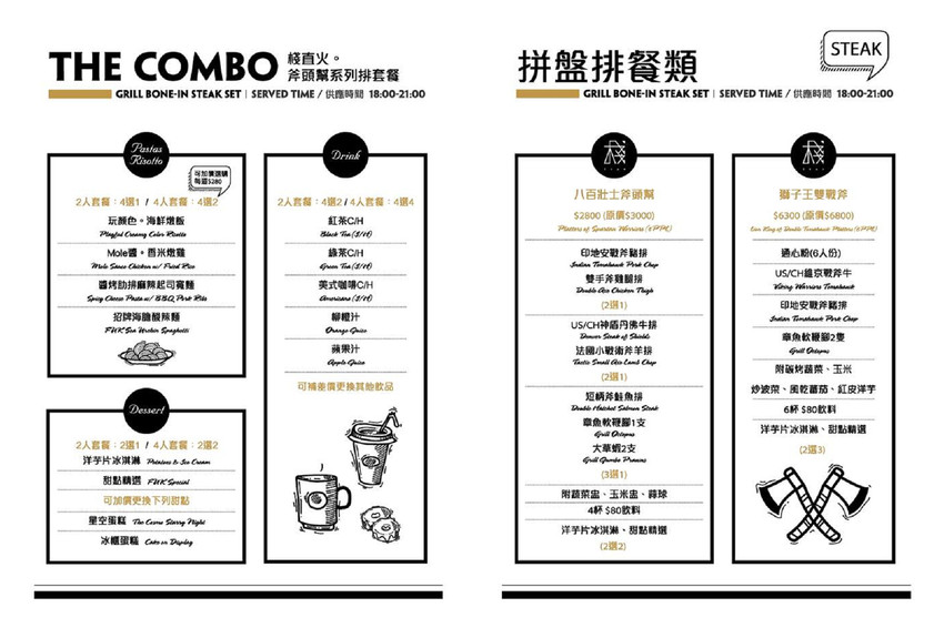 棧 F-U Kitchen 直火廚房的菜單,棧 F-U Kitchen 直火廚房升級為全戰斧碳烤餐廳,並且推出全新菜單,無論妳是一個人、兩個人、三個人、很多人!棧 F-U Kitchen 直火廚房都可以滿足您大口吃肉的慾望!點圖或點我看->完整版菜單