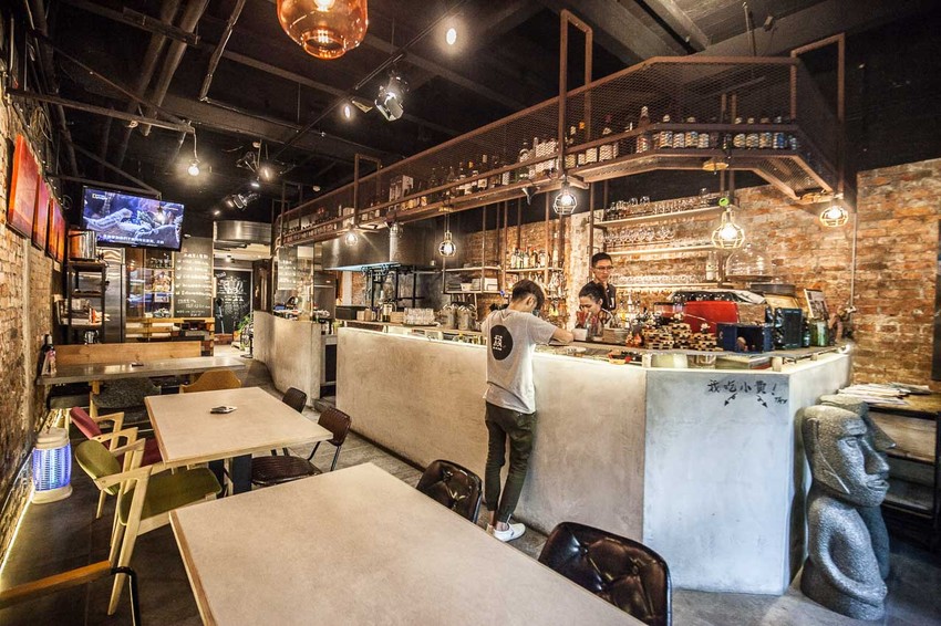 棧 F-U Kitchen 直火廚房的用餐區域分為1、2樓,1樓設有開放式的廚房,寬敞舒適的用餐環境同樣也是走美式的工業風格,眼尖的您是否有發現懷舊感十足的紅磚牆面有什麼玄機嗎?