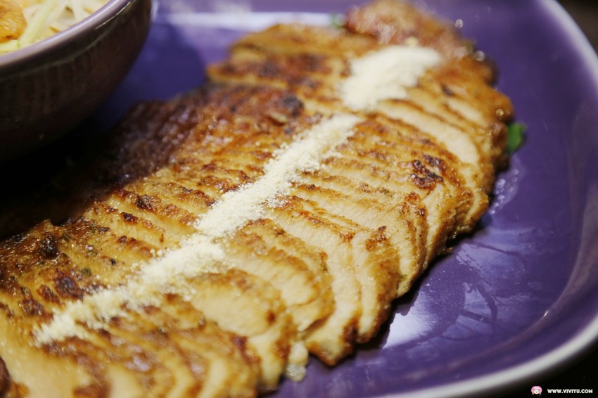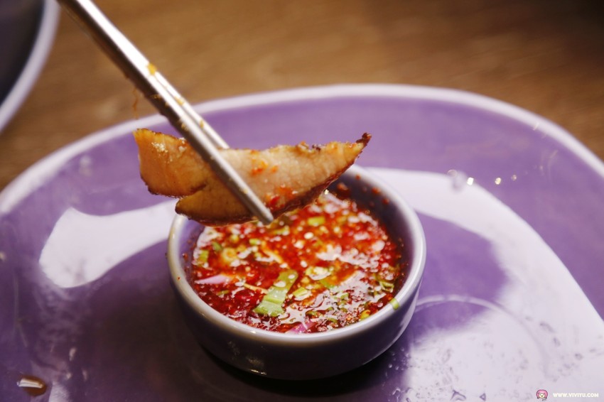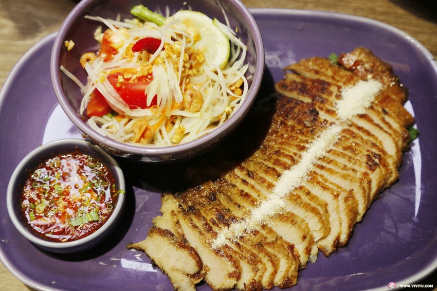 小朋友喜愛比較有咬勁的豬頸肉,這裡比較特別是還有搭配酸辣醬汁與青木瓜絲,更多變化吃法給這道料理展現多樣化風貌。