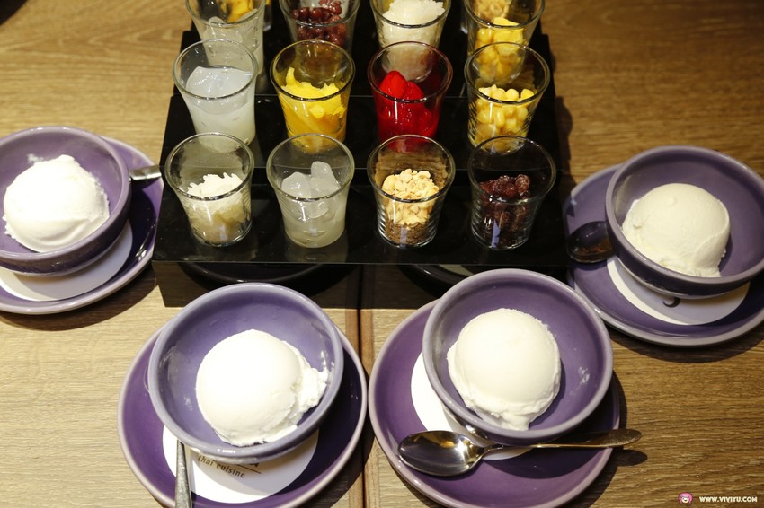 這可是NARA Thai Cuisine才吃得到的招牌冰淇淋,搭配八種不同的各式佐料,可以自由發揮創意作搭配出想吃的冰品。