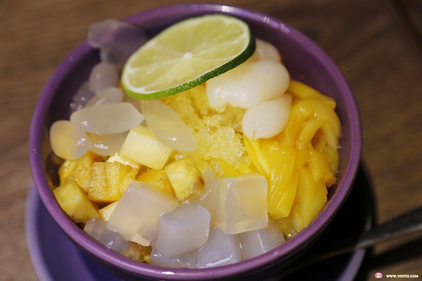 多種水果展現出豐富材料的展現著南洋滋味,添加的芒果與檸檬糖水酸甜更是好消暑。