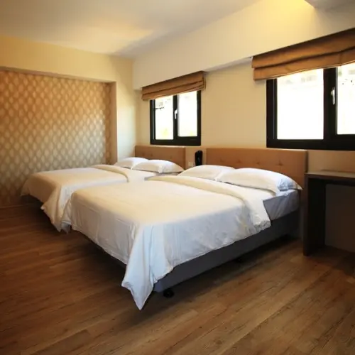 除了一大床的雙人房之外,還有兩大床的家庭房、兩張單人床的雙人房;