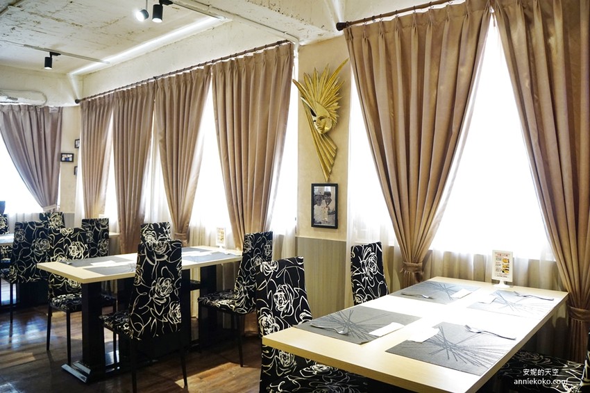 跟許多義大利餐廳相比,這裡的確沒有太多氣派的裝潢,但桌椅擺設與氣氛仍具有一定的水準,華麗的黑色襯金牆面,以及柔美的紗幔,牆上還掛了不少江哥四處旅遊以及跟朋友在餐廳用餐的照片,來到這裡餐桌上的料理才是會令人在意的重點,這裡也是許多饕客不斷回訪頗受好評的主因。