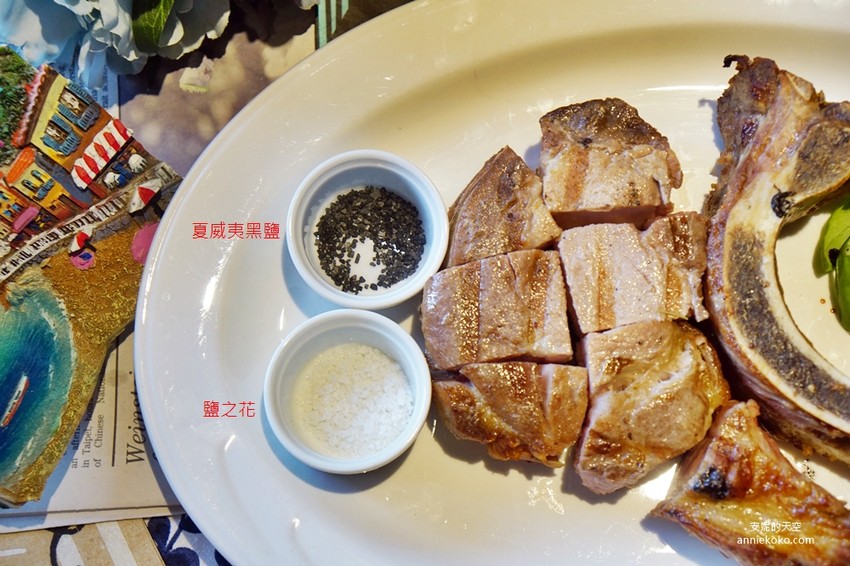 米蘭附上了兩種鹽巴,一種是鹽之花,另一種是夏威夷黑鹽,江哥對各種食材搭配的配角也相當重視,夏威夷黑鹽是用椰子殼煙燻而成,味道也極為特別,兩者搭配起來各有不同風味,一口伊比利豬,兩種不同感受。