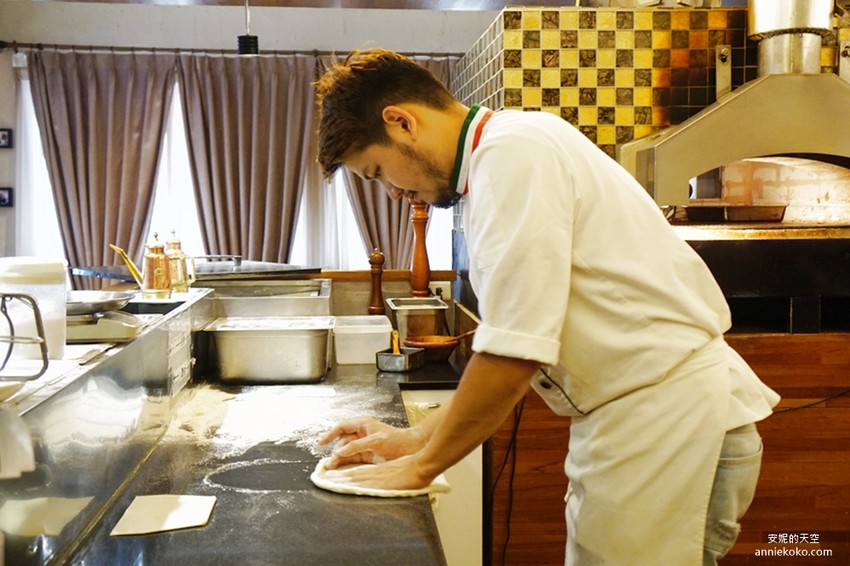 很多人都認為窯烤披薩就是要柴燒或是碳燒才好吃(我本人的確有這樣的迷思),但江哥因應環保,選用瓦斯爐,第一是熱度較為平均,再來也是安全環保,最主要是窯烤設備的完善,雖然廚房在中間,但我們一點都沒有聞到料理時會出現的油煙味道,這點相當特別。