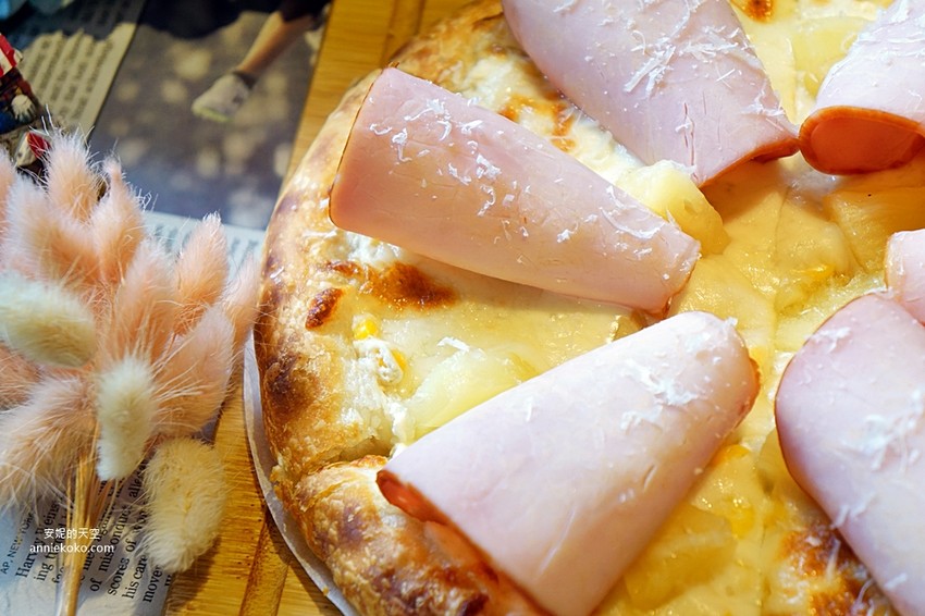 火腿捲成像花朵一般的夏威夷披薩不僅視覺上美觀,口味上更是老少咸宜,PIZZA裡是鳳梨與玉米的結合,吃起來充滿果香與甜度,不太吃火腿的我很驚艷這火腿的口味,完全沒有一般火腿的死鹹,肉質滑嫩鹹淡度又剛剛好,非常深得我心。