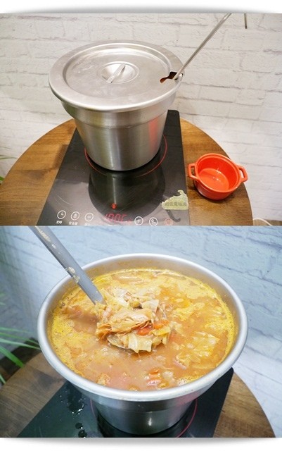 點完餐點後就可以來享用這鍋蝦蝦湯,自助式可無限取用。