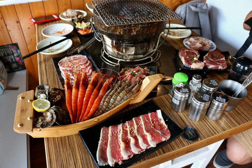 胖肚肚燒肉吃到飽有三種價位【精選439吃到飽】 【豪邁569吃到飽】【老饕699吃到飽】,因為我很喜歡吃牛舌,所以二話不說當然是選老饕699,多吃個幾隻天使紅蝦跟生蠔就值得了!