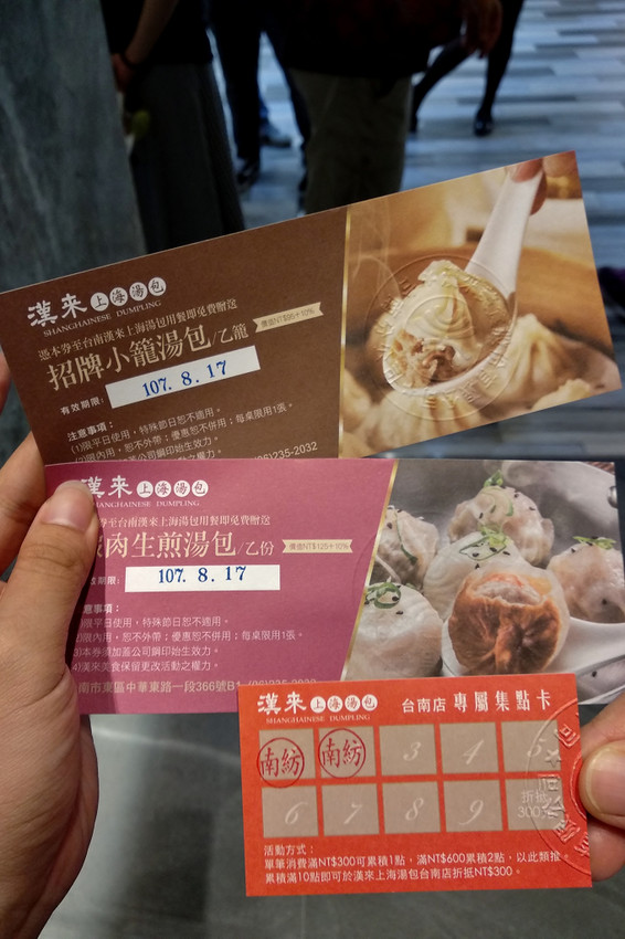 試營運期間點招牌小籠湯包跟蝦肉生煎湯包都有送一張兌換卷,我們各點一份,本來以為只會送一張,結果兩份都有送還蠻大方的。