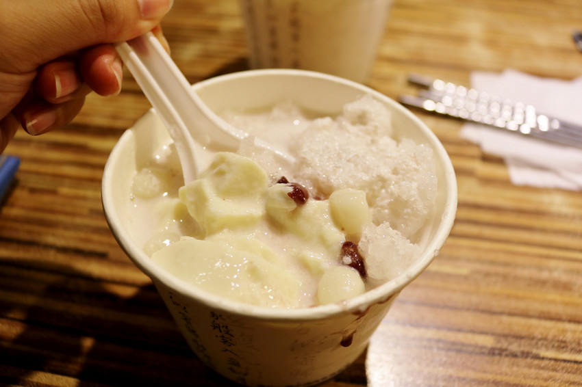 本來想點的豆漿豆花賣完了,只好試試上面寫說是招牌的椰子豆花,清新的椰香意外美味,喜歡搭配的紅豆跟小湯圓,都好好吃喔~~