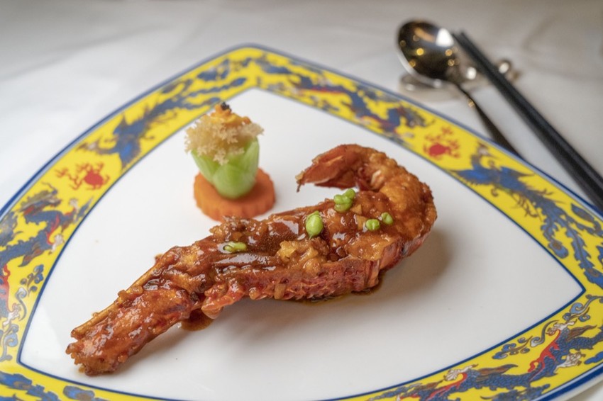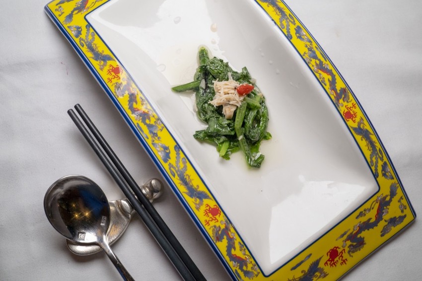 皇后魚以清蒸手法享受魚最原始的風味,上頭有其豐富的膠原蛋白:燕窩點綴,一旁撒上紅藜麥,為這道菜增添一點紅~