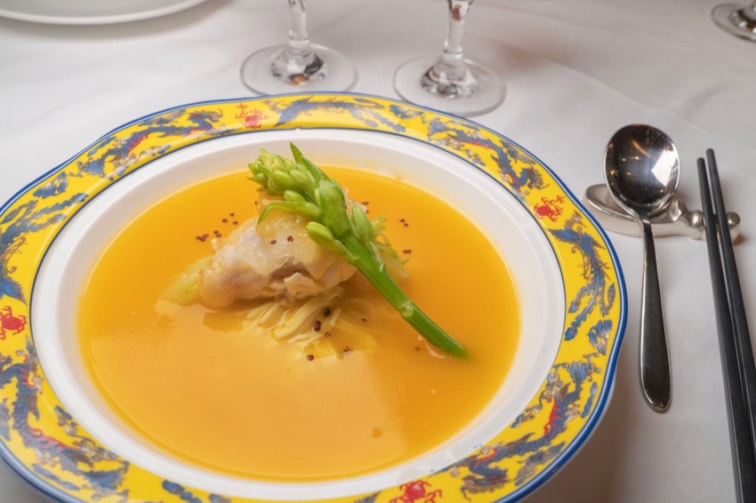 魚肉底下豆腐絲非常軟嫩有味,搭配底下南瓜雞湯津津有味!
