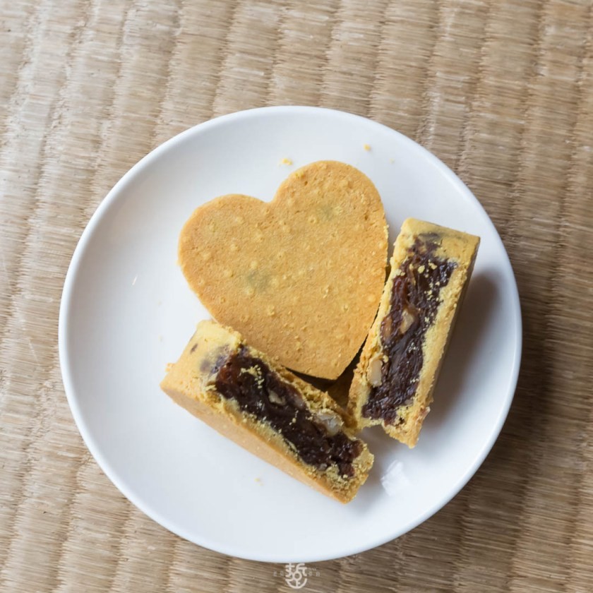 內餡更是令人驚豔,我原以為是一般常見的鳳梨冬瓜餡,我錯了,原來內餡有牛蒡絲、青葡萄乾、老梅汁與核桃堅果。為了軟化曬乾的青葡萄乾,特別用了信義鄉的老梅汁來做軟化,風味很特殊,保有酸甜口感無人工合成添加劑。