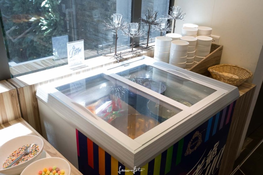 ▼在這我有發現,放冰淇淋的冰櫃,一直被中庭的太陽光直射,我猜應該會很耗電,還好裏頭冰不會軟軟的硬不起來。
