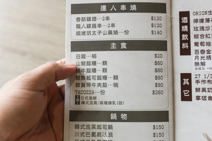 有別其他燒烤店的飯糰是用烤的,這裡是先炸後烤的,外皮更脆,有像是在吃食鍋拌飯的鍋吧,冷冷吃也很好吃。