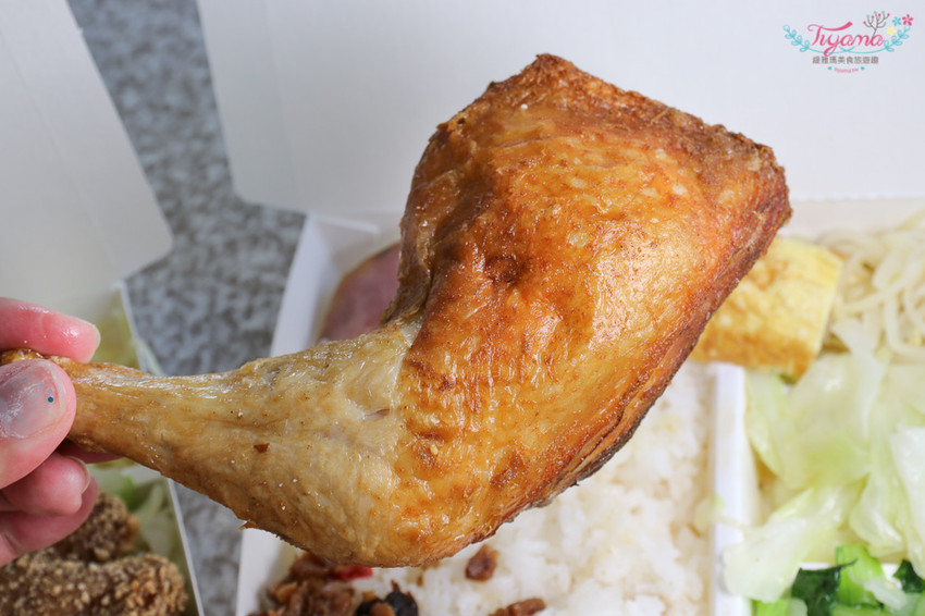 雞腿選用L型大雞腿,先醃後炸,沒有特別裹粉炸,皮脆肉嫩,大雞腿整支拿起來啃很過癮。