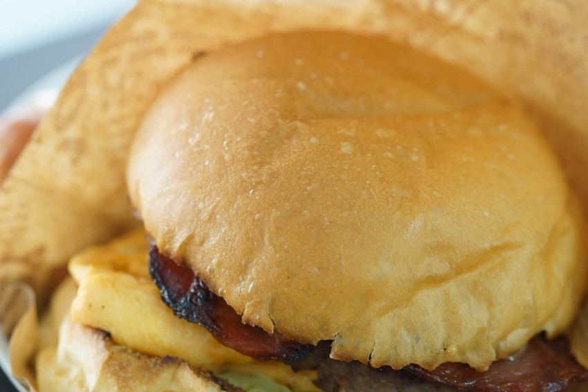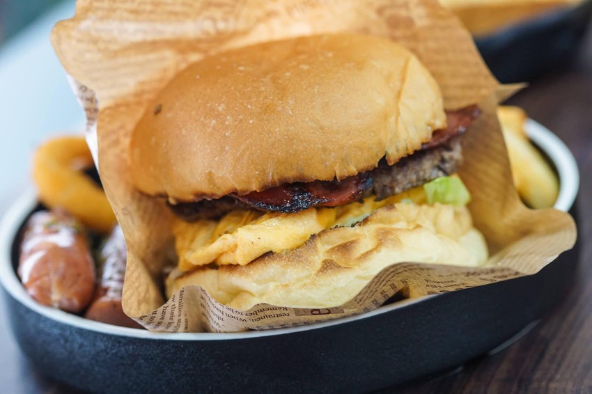 早餐想要小小犒賞自己的話,店家也有提供套餐~這款是肉食主義會愛的,另外還有一款『少女情懷』就是以法式吐司為主角。花生醬培根牛肉堡,以原味漢堡皮為搭配,內餡真的很豐富,這樣口味也較為均衡。