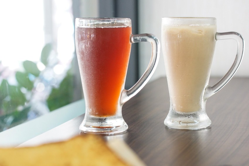 與一般早餐店的紅茶風味全然不同,特意挑選日月潭紅茶加上阿薩姆紅茶,茶香細緻且清透。鮮奶茶微糖,內用的杯子好像啤酒杯XD