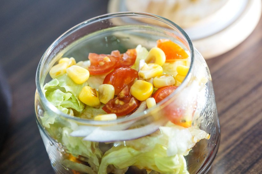 ▼果醋沙拉,用玻璃罐承裝,冰涼上桌,果醋醬也是店家自己調製的呦!
