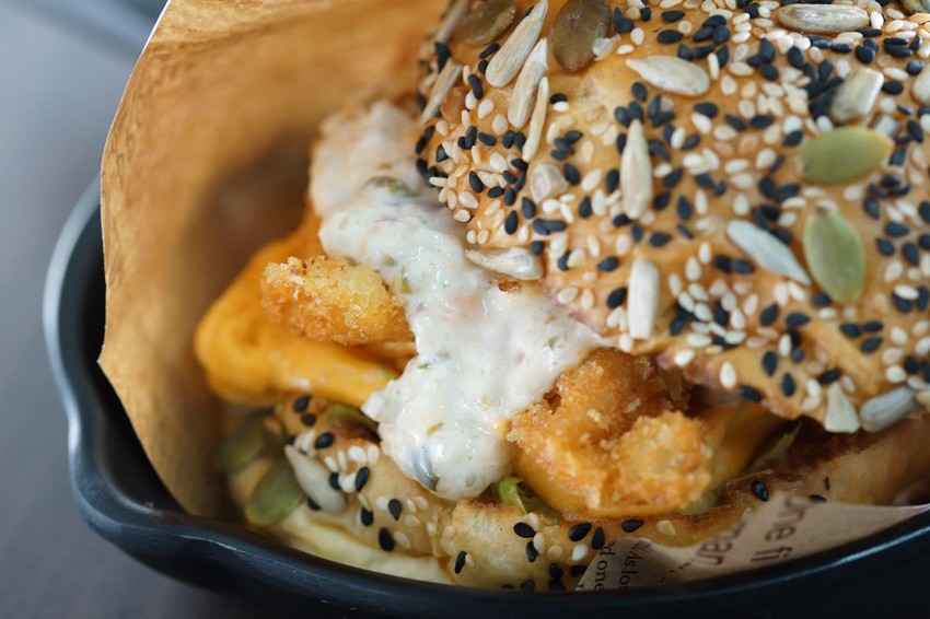 塔塔醬跟雞柳通通都是店家自製的!大推塔塔醬~兼具味蕾及口感的滿足。以納豆雞蛋製成白煮蛋,減低了雞蛋的腥味,再加入紫洋蔥、酸豆、酸黃瓜等食材增加口感及刺激辛辣,酸溜提味。酥炸雞柳,麵包粉加上蛋液、麵粉包裹油炸,特意保留雞柳的水份。煎蛋嫩口並且無腥味,整體食材呈現十分乾爽不油膩更是加分!