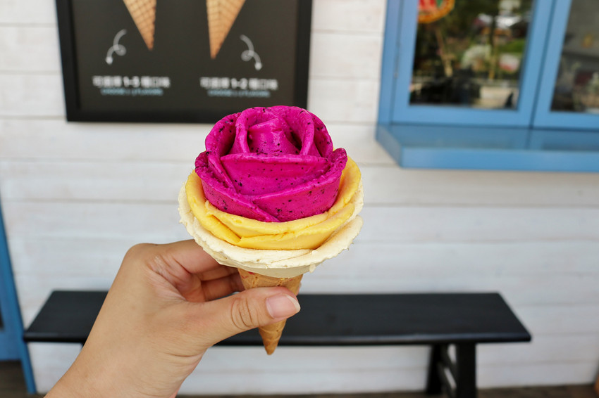 玫瑰造型好浪漫好好拍,又好吃到讓我心花朵朵開,直接躍升我心中台南第一名冰淇淋店!!
