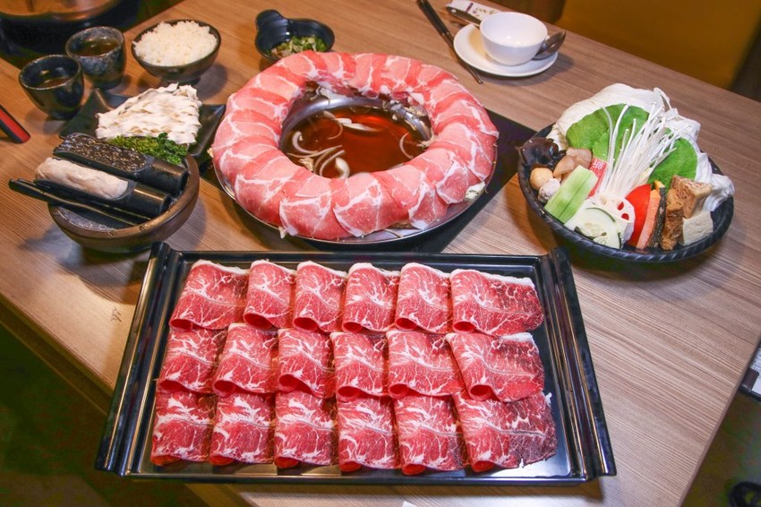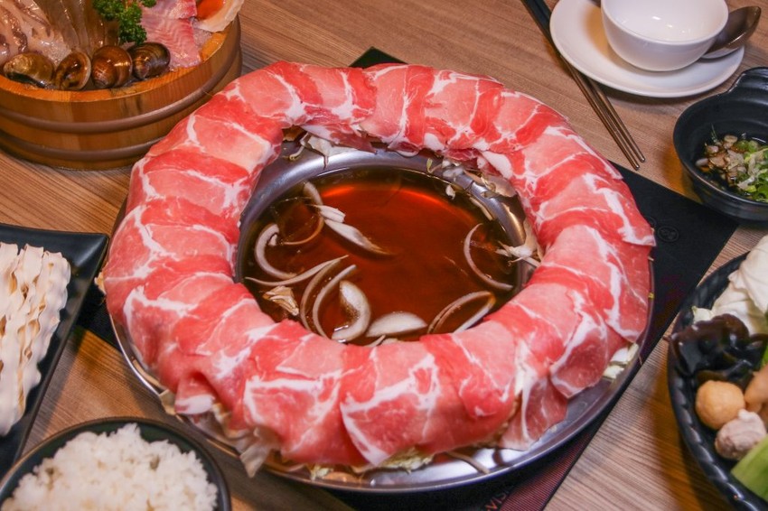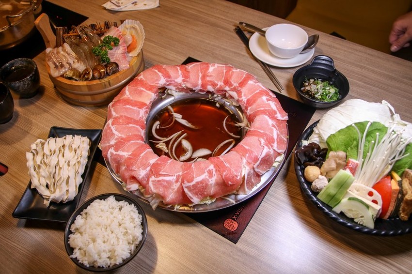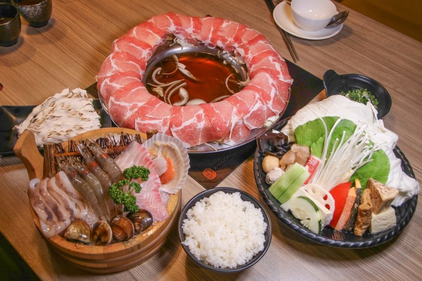 有多種湯頭可以選,梅花豬圈圈搭配的是招牌壽喜燒