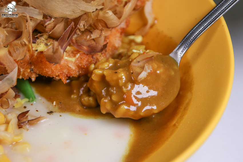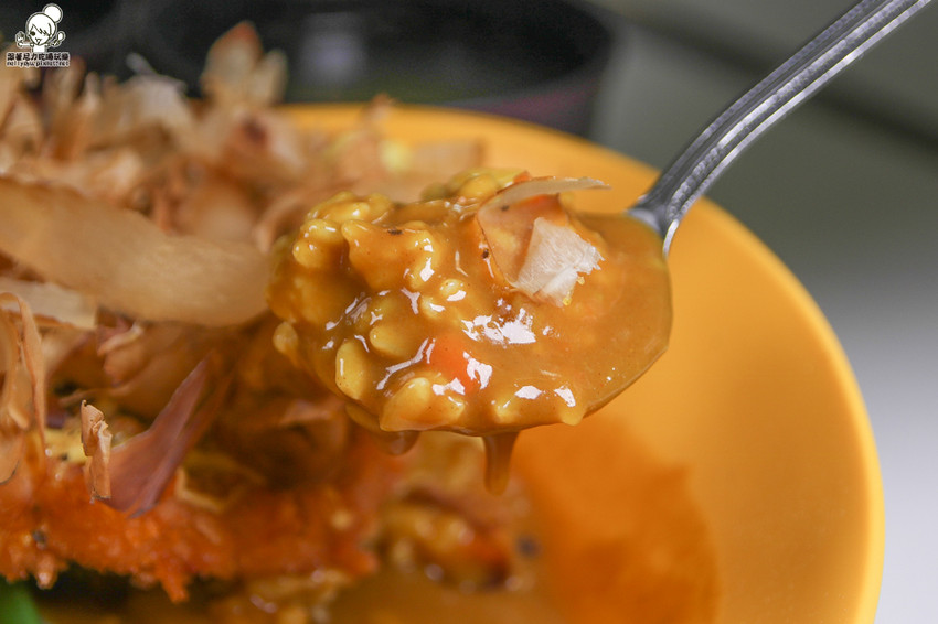 帶有日式和風滋味的大阪柴魚豬排雙醬咖哩,柴魚還在舞動著
