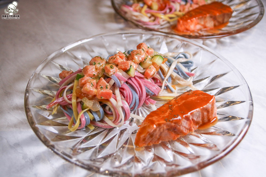 使用蔬菜水果特製的彩色手工麵條,好吃大推阿~